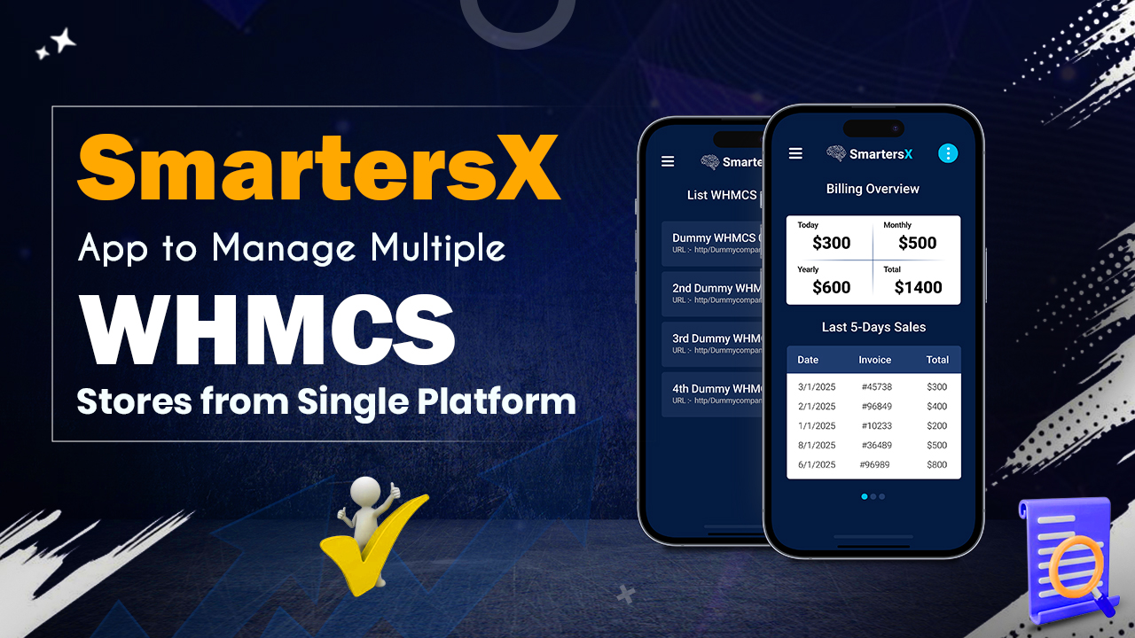 SmartersX App is a dedicated mobile and web solution built for managing WHMCS stores. It empowers administrators to oversee multiple WHMCS instances all from one unified dashboard. Whether you operate a single store or manage a network of them, SmartersX helps you stay organized, data-driven, and always up to date.